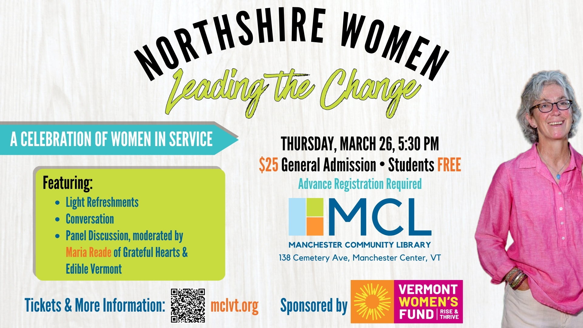 Please join us for an enlightening conversation celebrating women committed to service while inspiring future generations in Vermont.