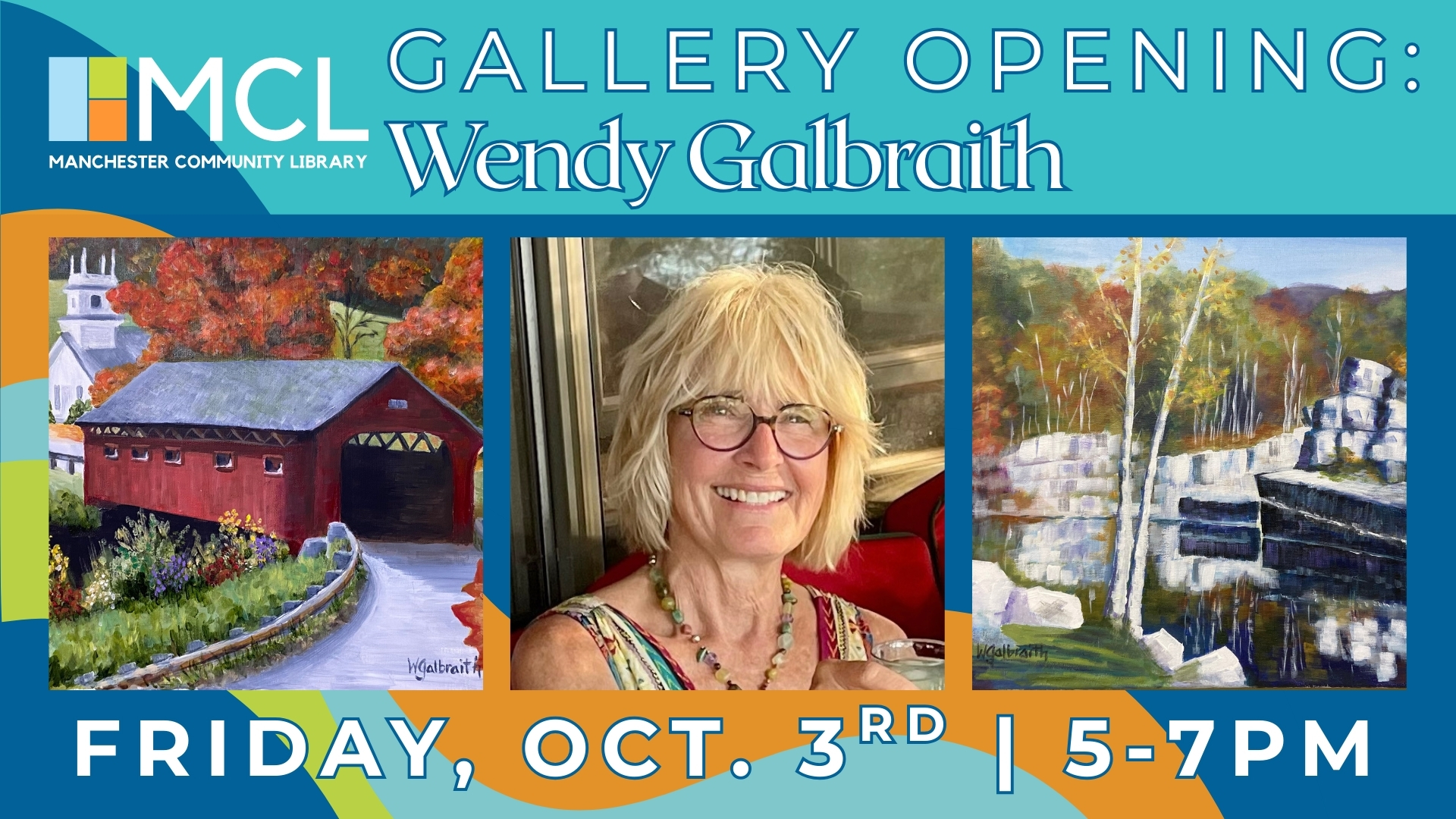 MCL is proud to offer The Gallery, a space for the exhibition of original works by local and regional artists. The Gallery has the same operating hours as the Library as a whole, and hosts openings when new artists take up residence on our walls.