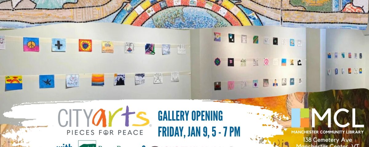 Presented alongside the CITYarts Pieces for Peace Traveling Exhibition in the main gallery space, this companion display highlights the creativity and perspectives of students from Long Trail School and Burr & Burton Academy, who contributed their own works to the global Pieces for Peace initiative.